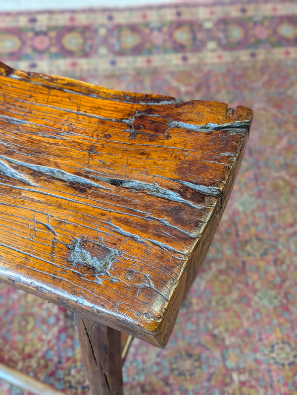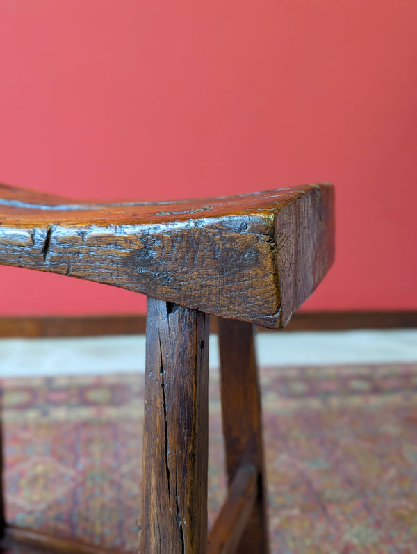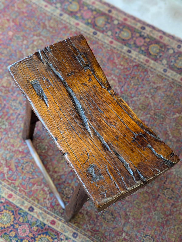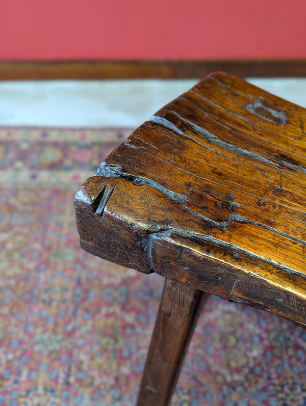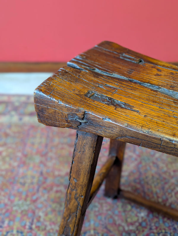 Brimming with rustic charm and honest character, this is a beautiful example of early vernacular furniture - ideal as an occasional stool, a fireside seat, or simply as a sculptural accent in a hallway or beside a hearth.