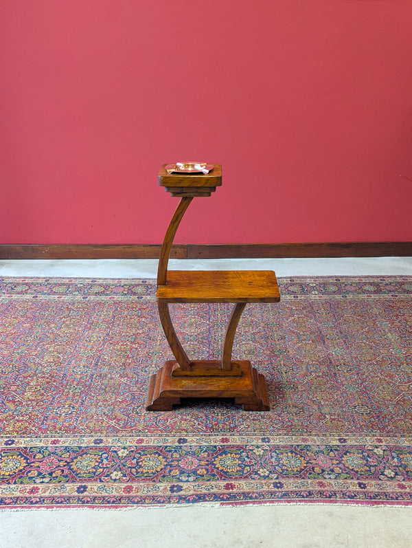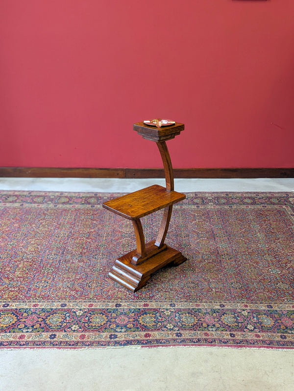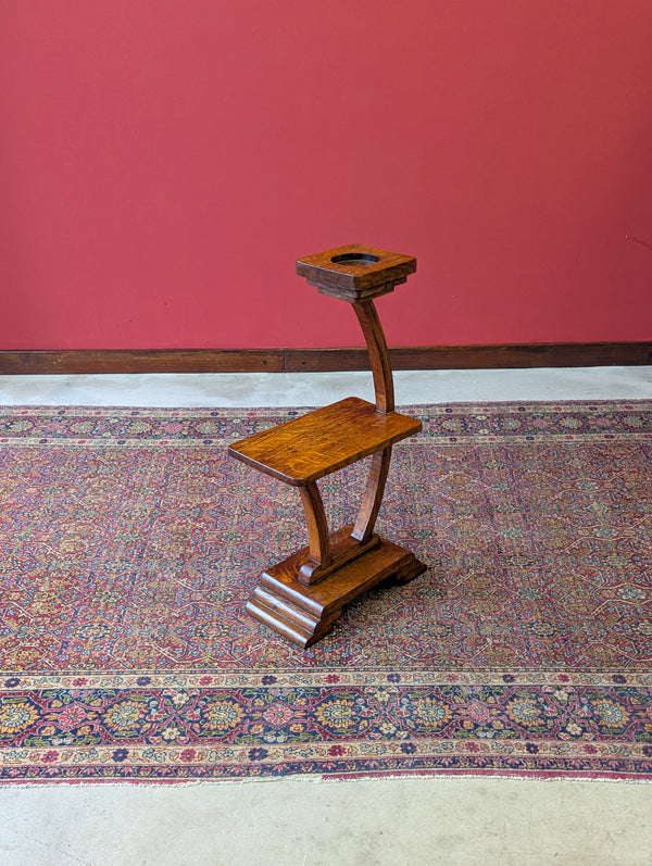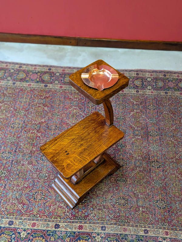 Antique 1920’s Art Deco Oak Smoking Stand Table