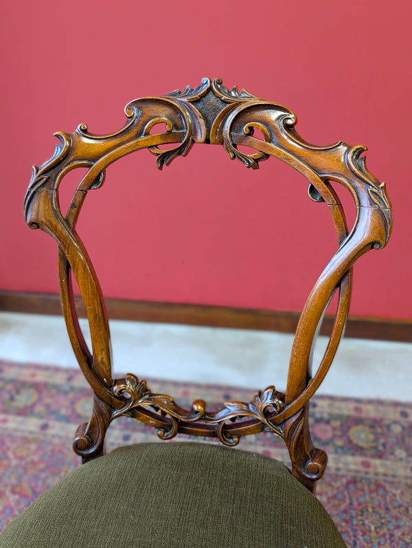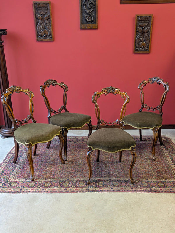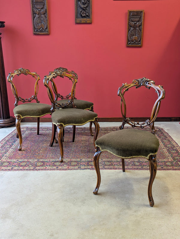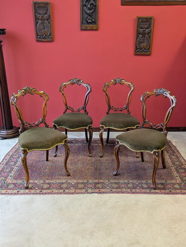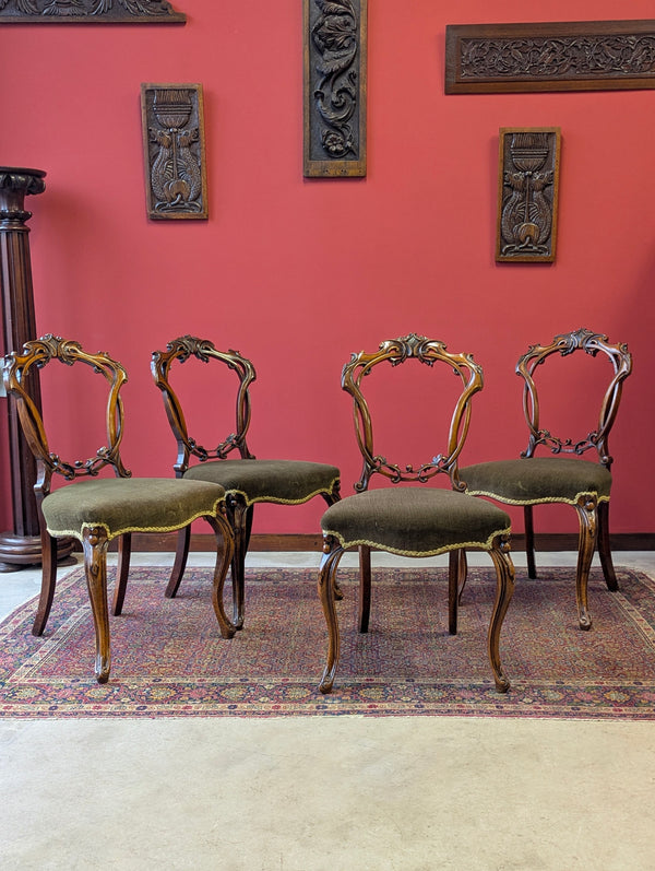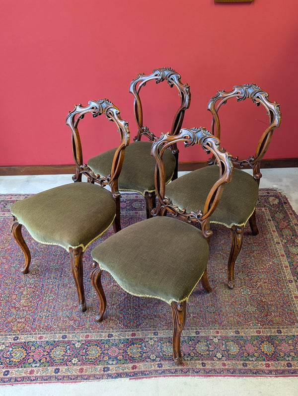 Antique Victorian Walnut Carved Balloon Back Dining Chairs – Set of Four c.1870